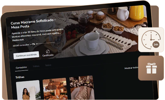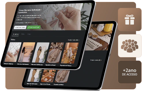 Ganham 1 ano a mais de acesso em cada curso (totalizando 2 anos de acesso nos dois cursos: curso de Mesa Posta e curso Macramê Sofisticado Luminárias).