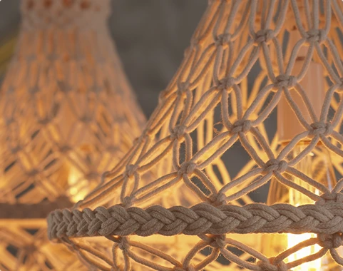 Teremos aulas de aquecimento antes do evento principal onde você conhecerá os materiais necessários e os nós básicos fundamentais para criar sua luminária com confiança.